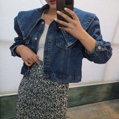 ビッグカラーデニムジャケット ショート丈 カジュアル ガーリー E507