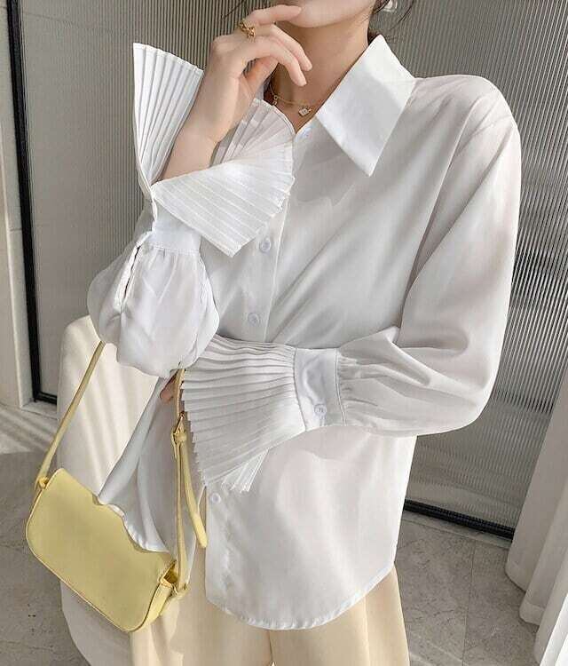 デザインシャツ 袖プリーツシャツ ブラウス オフィスカジュアル 清楚 E166