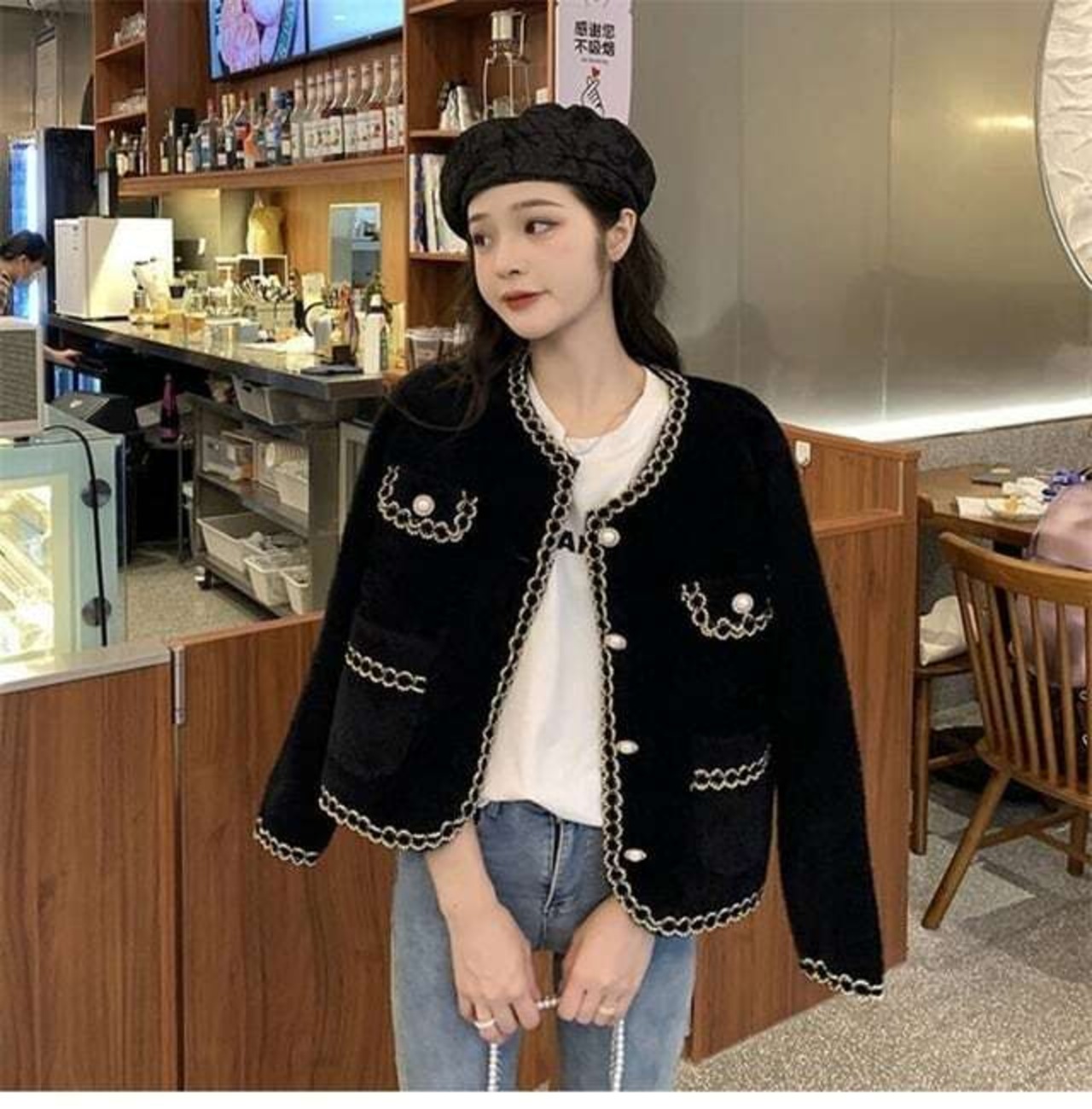 ニットカーディガン ジャケット風 パール ガーリー デート E486
