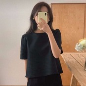 ツイードトップス 5分袖 ベーシックブラウス お呼ばれ E420