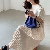 スクエアカラーワンピース プリーツワンピ レース エレガント E404