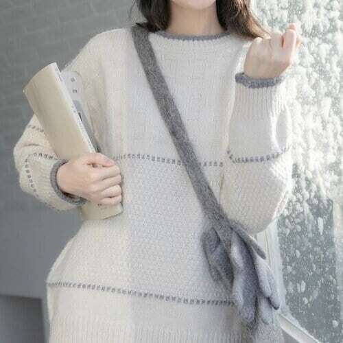バイカラーニット ハイゲージニット カジュアル ガーリー E559