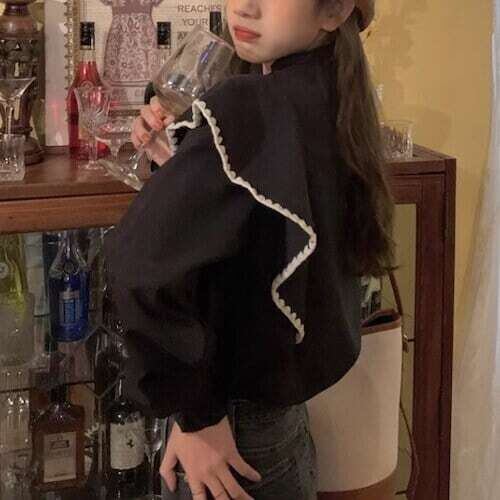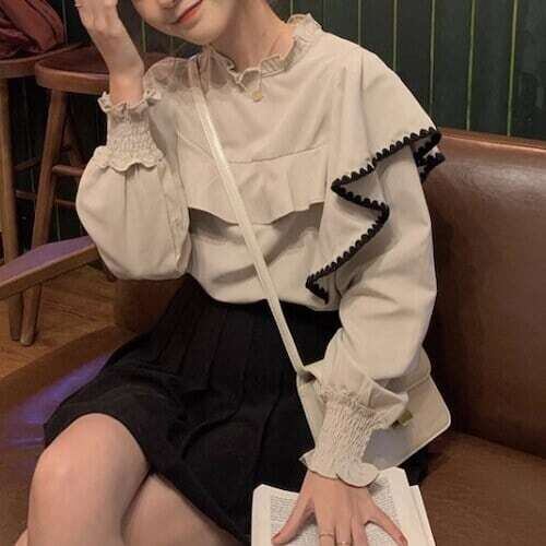 フリルトップス フリルステッチ フリルネック ガーリー カジュアル E555