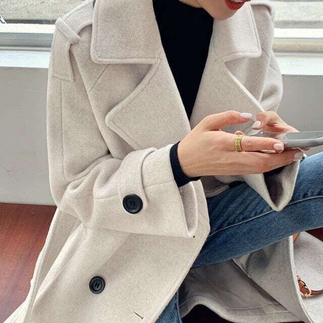 ウールコート ロング丈 ウエストリボン エレガント E576