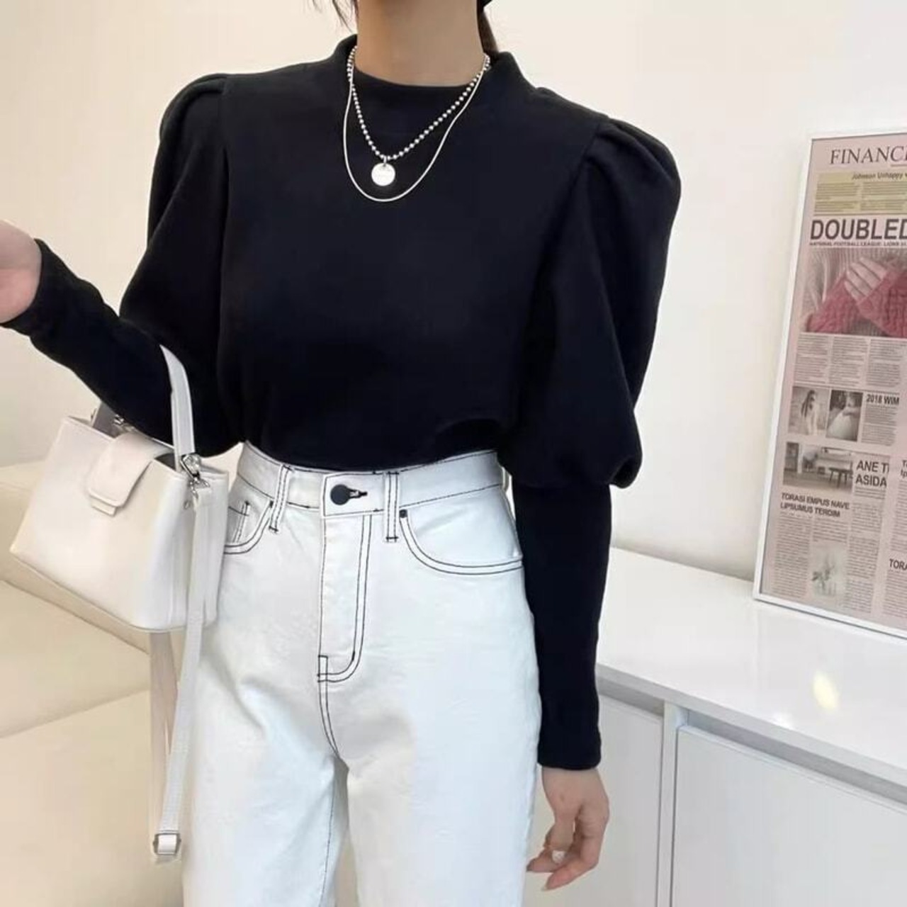 パフスリーブニット ボトルネック トップス カジュアル ガーリー E571