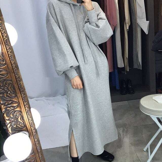 パーカーワンピース トレーナーワンピース ランタンスリーブ カジュアル E199